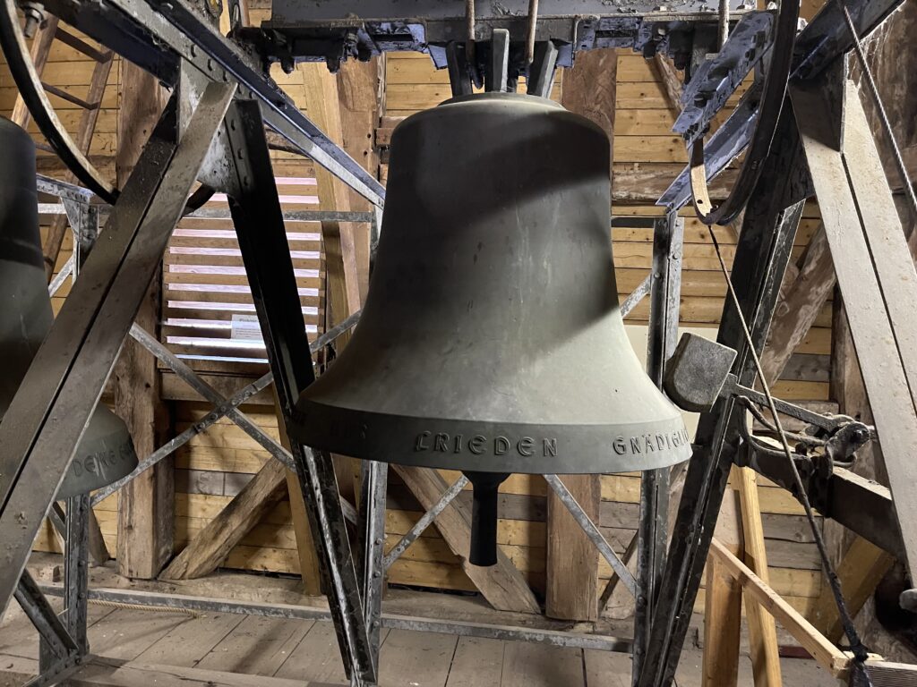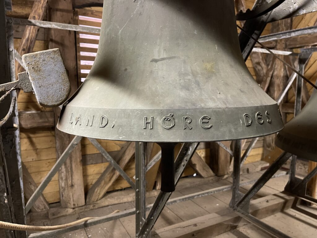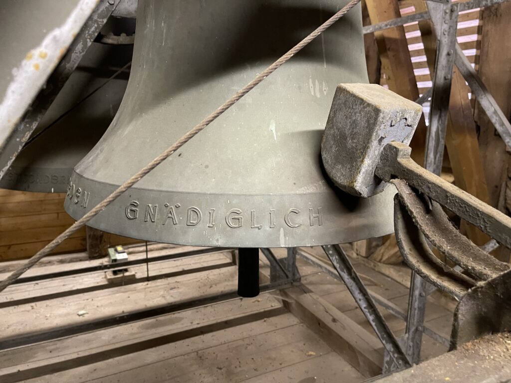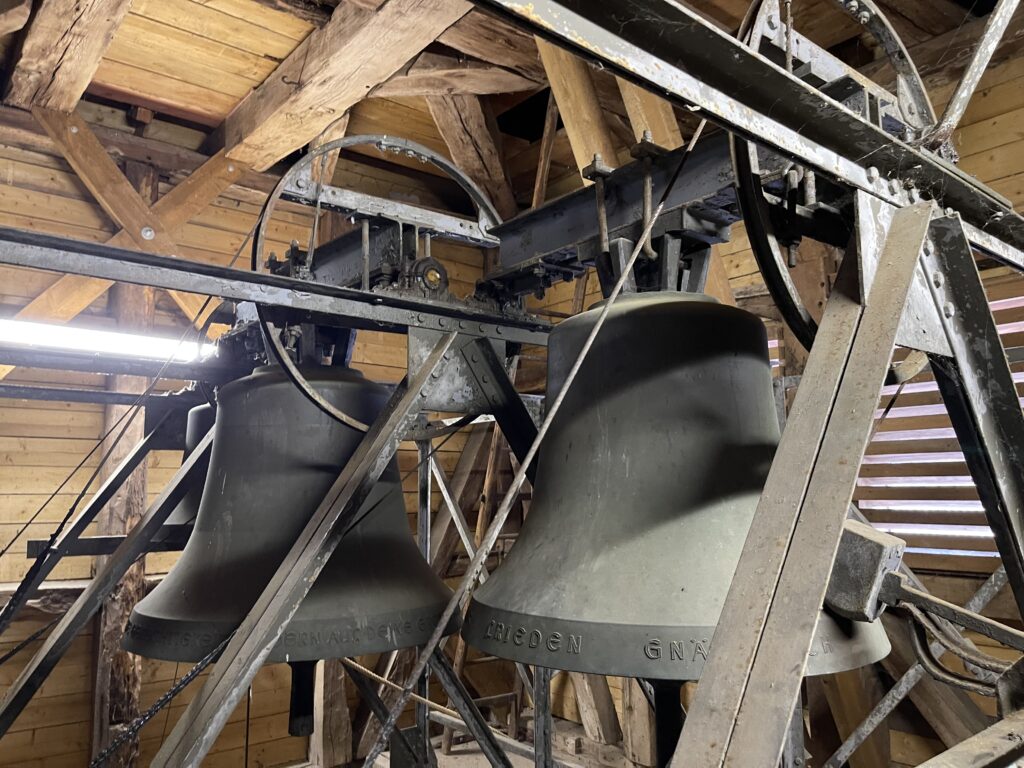 Die Geschichte der Kirche ist auch eng mit ihren Glocken verbunden. Ursprünglich hatte die Kirche drei Glocken, die jedoch durch die Kriege des 20. Jahrhunderts stark dezimiert wurden. Während des Ersten Weltkrieges musste eine Glocke abgegeben werden und 1920 wurde eine weitere Glocke entfernt. Die verbleibenden Glocken wurden später durch Stahlglocken ersetzt, die jedoch im Laufe der Zeit zu rosten begannen. Im Jahr 1960 wurden schließlich alle Glocken durch Bronzeglocken ersetzt, die bis heute ihren vollen Klang, über das Dorf tragen. Das Handläuten wurde durch elektrische Läutemaschinen ersetzt, die seit 1986 von einer Schaltuhr gesteuert werden.