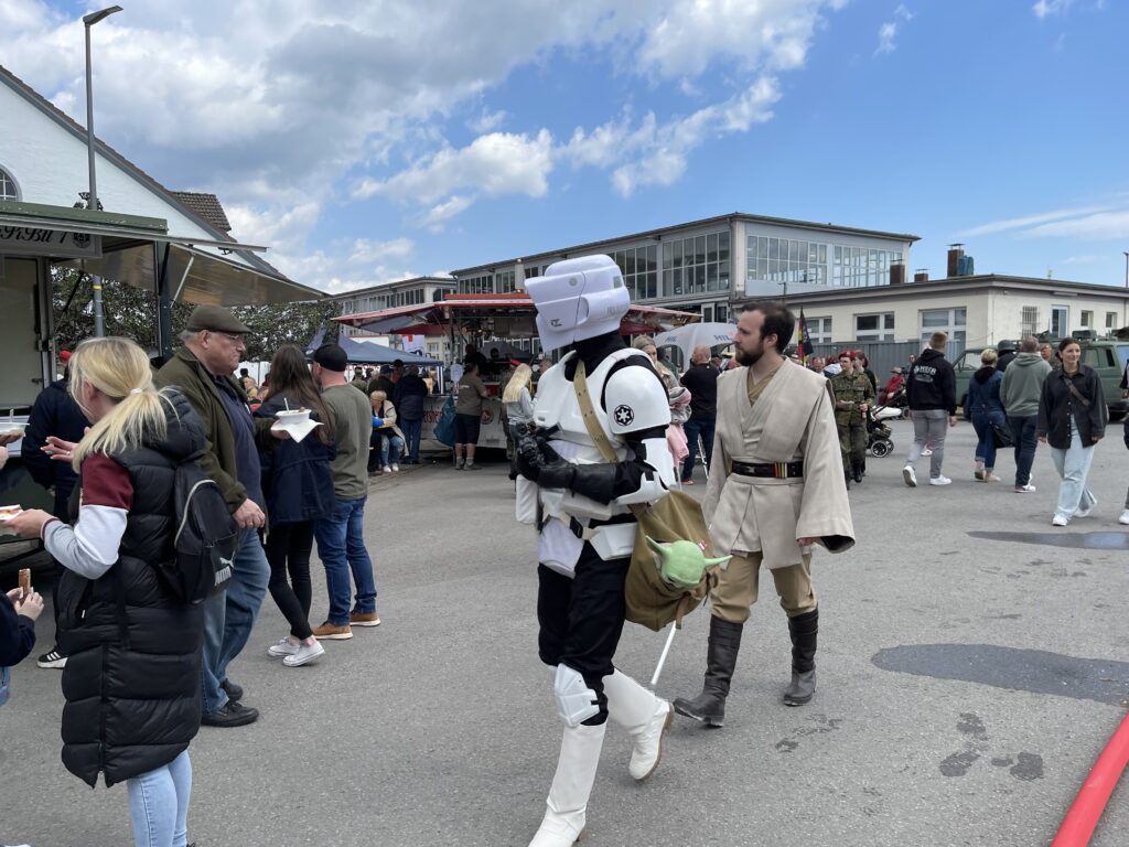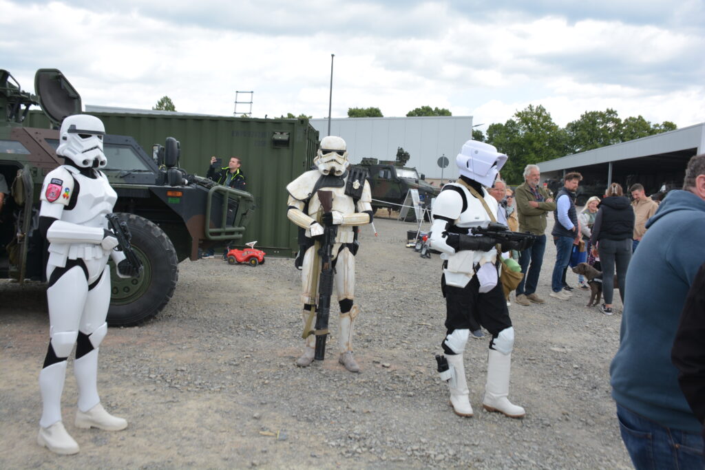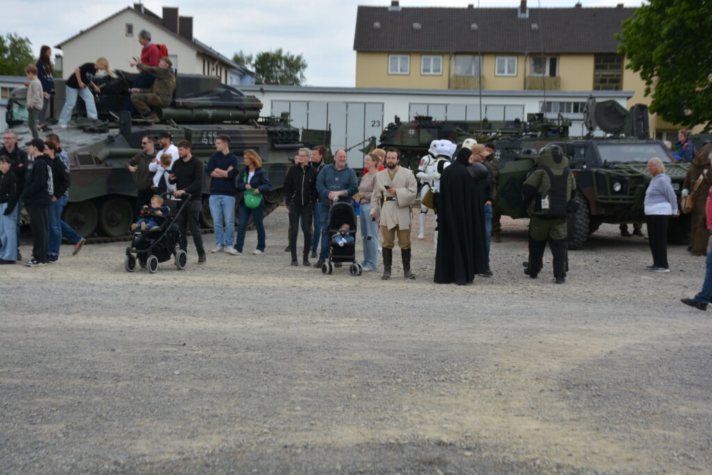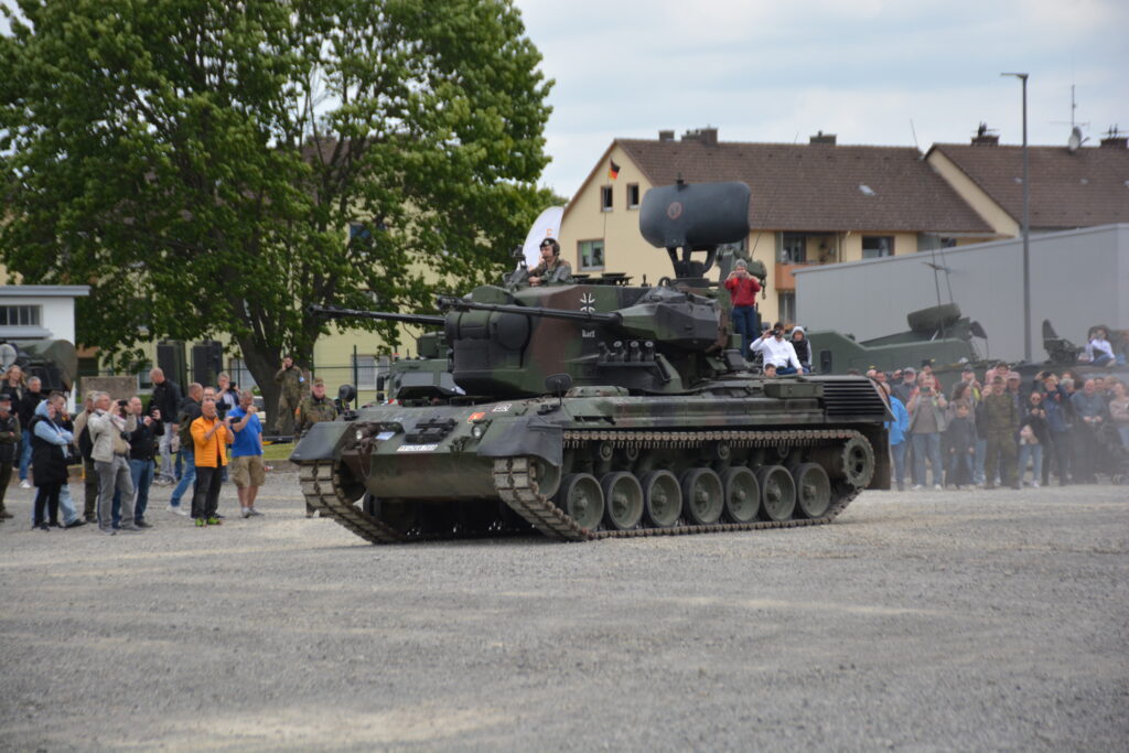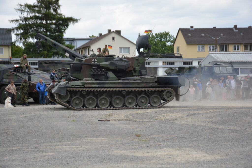 Nicht nur bei technikbegeisterten Besuchern, sondern auch bei zahlreichen Reservisten wurden dabei emotionale Erinnerungen wach. So mancher erkannte „seinen“ alten Minenwerfer Skorpion, Flugabwehrpanzer Gepard und weitere Fahrzeuge, die seit dem Ende des Kalten Krieges aus der Bundeswehr verschwunden sind. Auch Helmut Duntemann konnte sich dem nicht entziehen: Mit einem kleinen Modell des Flugabwehrpanzers Roland in der Hand stellte er sich stolz vor den „großen Bruder“ – jenes System, für das er einst in Fuldatal-Rothwesten Verantwortung trug.