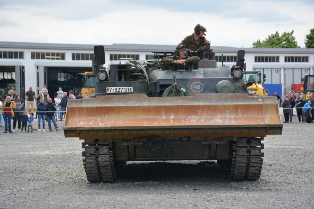 Im Freigelände der Kaserne gab es ebenfalls jede Menge zu entdecken: Neben modernen Ketten- und Radfahrzeugen des Panzerpionierbataillons 1 präsentierten sich auch historische Fahrzeuge – darunter echte Panzerklassiker, die mit Schwerlasttransportern aus dem Panzermuseum Munster nach Holzminden gebracht worden waren.