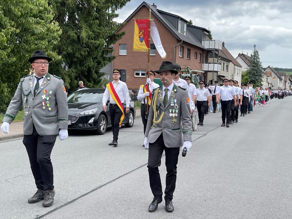 Am Abend heizte die Band Sneeze beim traditionellen Festball kräftig ein. Der Sonntag begann mit einem ökumenischen Gottesdienst im Festzelt, bei dem die restaurierte Vereinsfahne von 1926 feierlich geweiht wurde. Die Zeremonie übernahm Pastor Markus Röttger aus Beverungen, begleitet von Pastorin Berta Bolte-Wittchen von der lutherischen Trinitatis-Gesamtkirchengemeinde Solling-Weser.