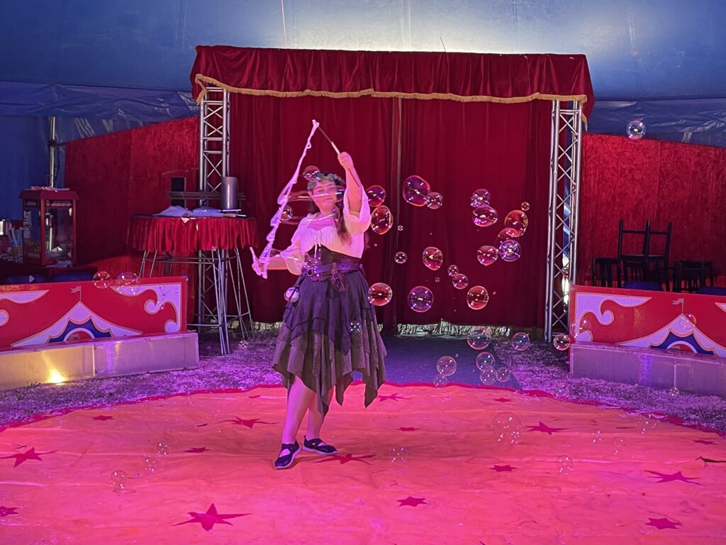 Ein Blick in das Zelt zeigt, was die Besucher erwartet: Naomi, die Schwiegertochter des Zirkusdirektors, hängt schwindelerregend hoch am Seil und zeigt elegante Luftakrobatik. Angst? Fehlanzeige. „Nur wenn mal etwas passiert – wie damals, als Tochter Yeane vom Seil abrutschte und sich das Handgelenk brach“, erinnert sich Patrick Endres, „dann muss die Vorstellung abgebrochen werden.“
