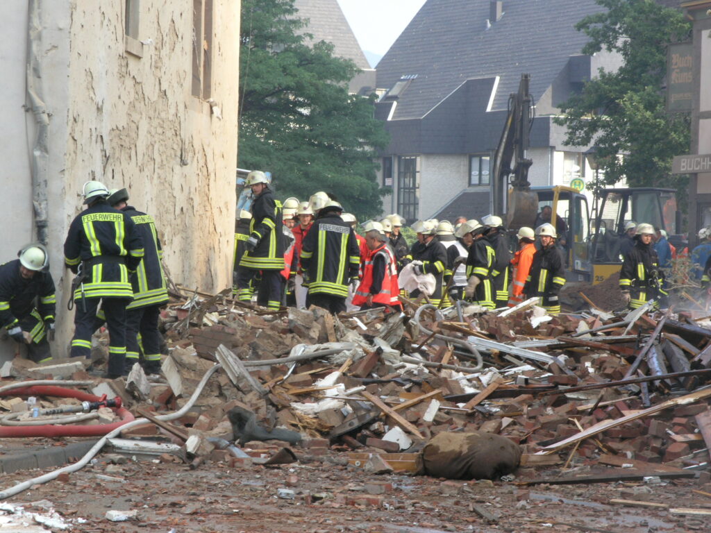 „Die Zusammenarbeit zwischen Feuerwehr, THW, Bundeswehr und Rettungsdiensten war vorbildlich. Verletzte wurden zunächst in einer nahegelegenen Arztpraxis in der Bachstraße versorgt und von dort ins Krankenhaus gebracht“, erinnert sich Henze.